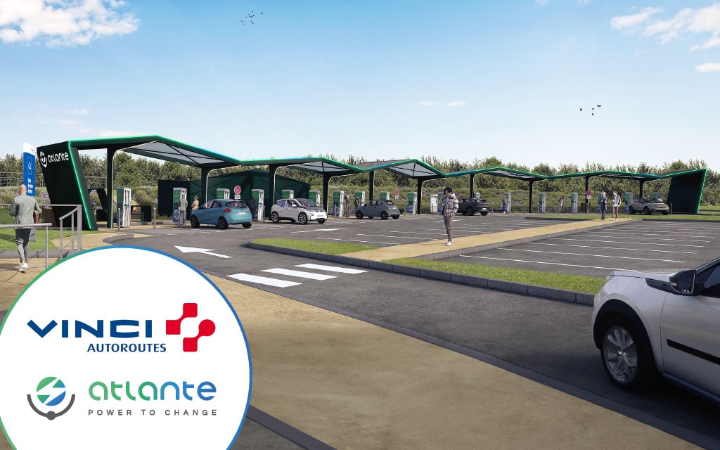 Atlante, lié à Stellantis, va installer de grandes stations sur quatre aires du réseau Vinci Autoroutes. Une d’elle comporte 25 points de charge.