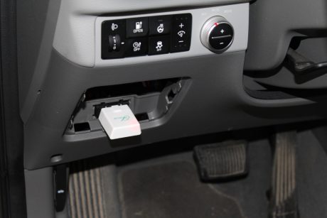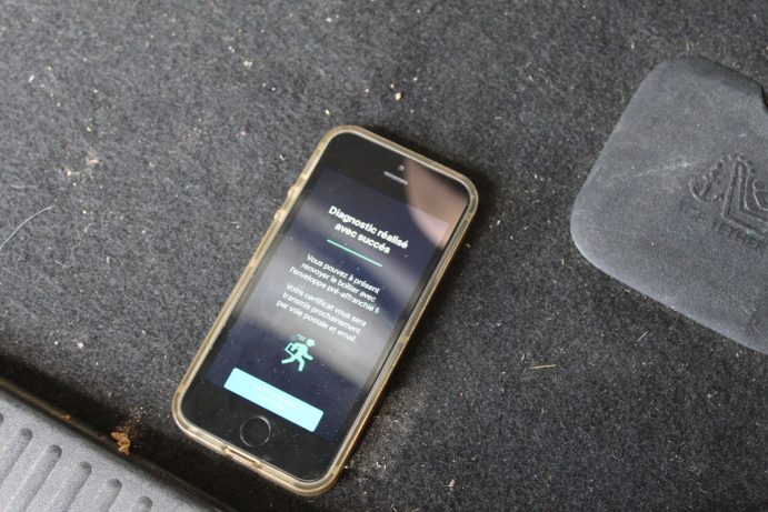 La Citroën a été le premier véhicule contrôlé. La suite du scénario s’est déroulée sans problème. Téléchargement de l’application, repérage sous le volant de la prise diagnostic et branchement du boîtier fourni par La Belle Batterie, lancement du soft, allumage du contact, connexion appli-boîtier, et récupération des données ont pris environ 5 minutes au total.