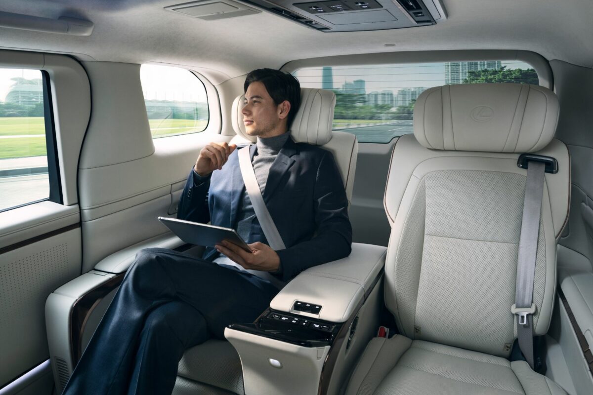 La version à quatre places est équipée d’une cloison entre l’avant et l’arrière qui abrite un immense écran de 48 pouces. Ce dernier peut être utilisé en plein écran ou divisé en deux, permettant à chaque passager de regarder son propre programme avec un casque individuel. Lexus a accordé une attention particulière à l’insonorisation pour offrir une expérience de voyage paisible et agréable.