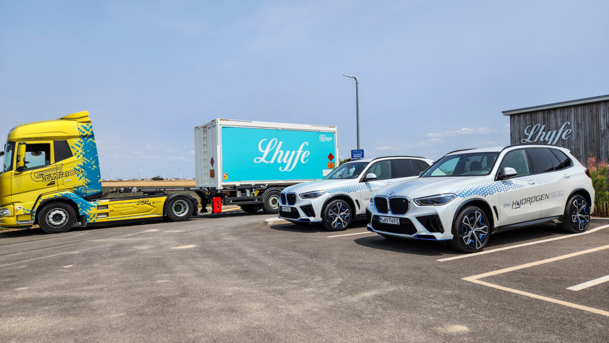 Quoi qu’il en soit, la démonstration faite par BMW et Lhyfe tend à démontrer que la vie en véhicule hydrogène est pour le moins très agréable. Encore perfectible, mais même l’acheminement de l’hydrogène vert à la station ne semble finalement pas plus complexe que cela. Chez Lhyfe, les camions se succèdent pour charger des conteneurs pleins de bouteilles d’hydrogène qui sont ensuite directement connectées à la station. Du côté de chez BMW, les propos sont clairs, la commercialisation d’un tel véhicule est étroitement liée à la capacité de l’alimenter avec de l’hydrogène vert. C’est d’ailleurs l’une des raisons principales qui explique que la marque allemande n’évoque pas de date de lancement pour l’iX5 Hydrogen, si ce n’est « une arrivée à partir de la seconde moitié de la décennie ».