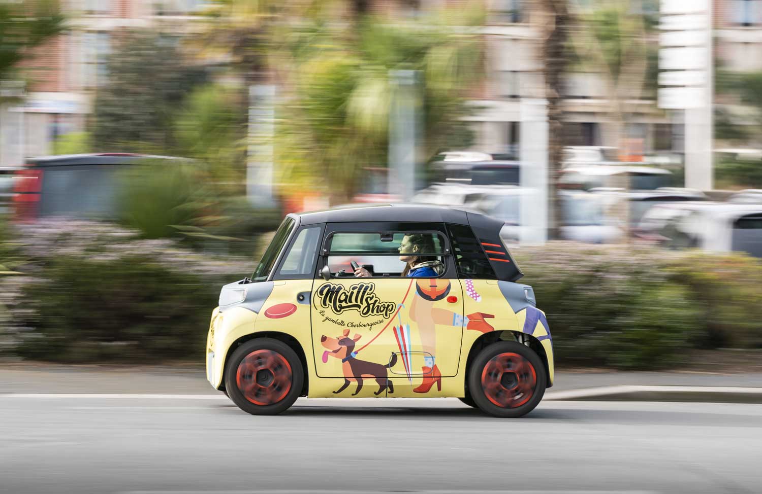 Déjà originale avec sa « belle bouille bien joufflue », la micro-citadine aux chevrons est devenue un emblème du centre-ville grâce à son graphisme coloré, à l’image de Maill’Shop, la boutique de Mathilde : « Le fait de la colorer à l’image du magasin était quelque chose d’important, et en termes de visibilité c’est super ! ».