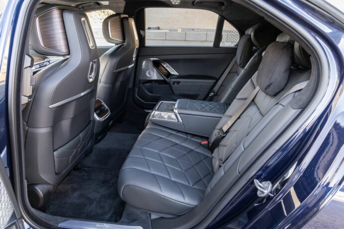 Avec une BMW i7 qui servira souvent de limousine pour les dirigeants d’importantes entreprises, on pourrait penser qu’elle dispose d’un grand coffre, mais ce n’est pas le cas. Le volume disponible derrière le couvercle électrique de la malle n’est que de 500 litres, avec une trappe à skis mais sans possibilité de la basculer, et le dossier des fauteuils à l’arrière ne contribue pas à améliorer cela. Pour compenser cela, il sera possible de tracter une remorque jusqu’à 750 kg si nécessaire.
