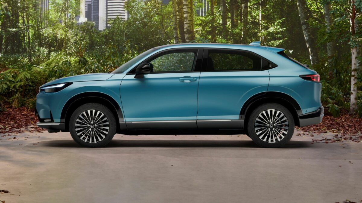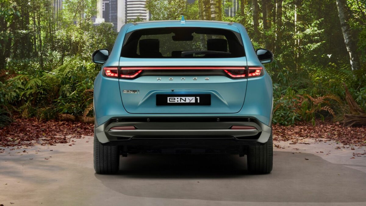 Esthétiquement, le Honda e:Ny1 s’appuie sur le HR-V, présentant une ressemblance frappante avec ce dernier à l’exception de quelques détails esthétiques tels que la calandre pleine. Les dimensions du SUV électrique sont également similaires, avec une légère augmentation de seulement 5 cm en longueur, portant la longueur totale à 4,39 m, tandis que l’empattement reste inchangé à 2,61 m. La garde au sol est plus élevée (19,5 cm) pour pouvoir notamment accueillir la batterie sous le plancher, la hauteur est légèrement supérieure de 2 cm.