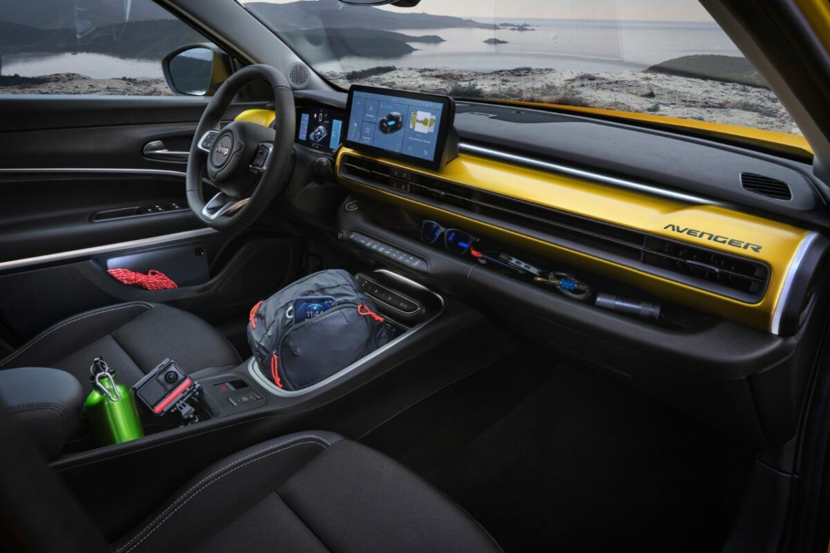 A l’intérieur de l’Avenger, on retrouve une planche de bord épurée avec notamment deux écrans de 10,25 pouces, l’un servant d’instrumentation numérique et l’autre d’infodivertissement.
